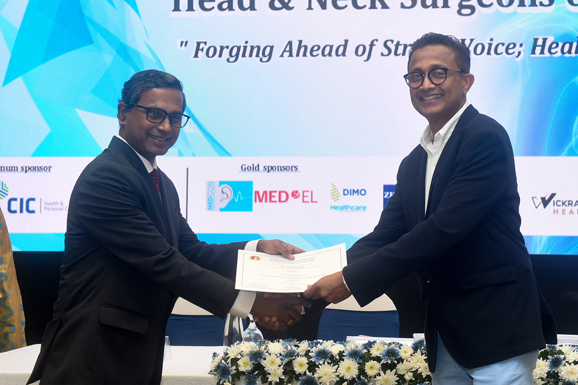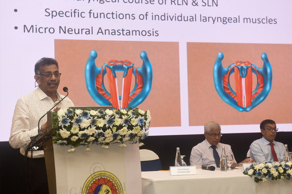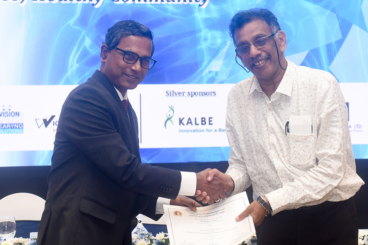 The 19th Annual Academic Sessions of CORLHNS was held on the 10th and 11th of February 2024 with a great success. The pre-Congress workshop on mastoid disease was held on the 10th of February 2024 (8.00 am) at the ENT auditorium, NHSL as a live surgery demonstration by Dr Madhuri Mehta (Consultant ENT Surgeon from India). It was well attended by the membership of the college and they were benefitted by the session immensely. The inauguration ceremony was held at Hotel Galadari, Colombo on 10th of February 2024 followed by a cocktail dinner. Prof P L Ariyananda, Emeritus Professor of Medicine University of Ruhuna, participated as the chief guest. The main congress was held on the 11th of February 2024 at Hotel Galadari, Colombo 01 under the symposium on mastoid disease, symposium on thyroid disease and guest lecture on soft tissue reconstruction of head and neck.